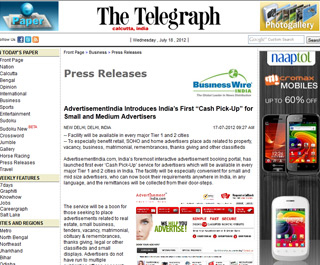 AdvertisementIndia.com, India’s foremost interactive advertisement booking portal, has launched first ever ‘Cash Pick-Up’ service for advertisers which will be available in every major Tier 1 and 2 cities in India. The facility will be especially convenient for small and mid size advertisers, who can now book their requirements anywhere in India, in any language, and the remittances will be collected from their door-steps.